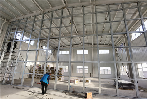 4、材料與結構4.1 泄爆墻由鋼龍骨(鍍鋅方管100*50*3mm)和泄爆板(鹽材料)及巖棉組成。(1)泄爆板規(guī)格尺寸為1220*2440*9.5mm(2)泄爆墻厚度為130mm(三層泄爆板)、120mm(雙層泄爆板)、110mm(單層泄爆板)、100mm(巖棉夾芯鋼板,做的不多),厚度可根據(jù)要求制作。(3)圖集上采用三層泄爆板,外面包兩層錯縫排列泄爆板,中間骨架鍍鋅方管,填充巖棉,里面包一層泄爆板,采用泄爆螺絲固定連接。